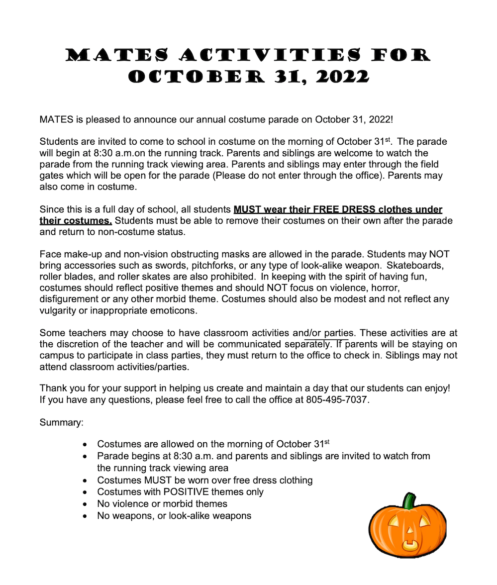 For classes having parties after the parade, parents who are participating must return to the office to check in