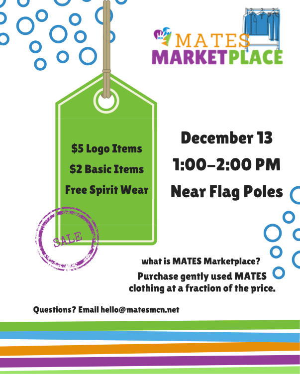 MATES Marketplace December 13 (Tue) 1 – 2 pm | near Flagpoles