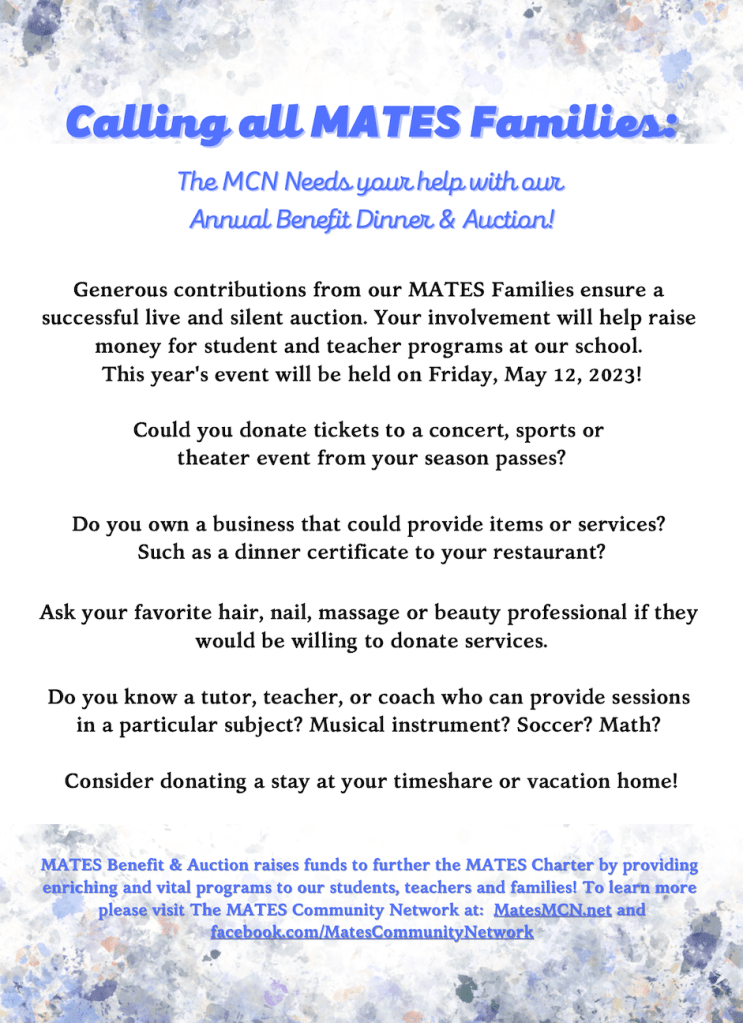 The MCN is planning an amazing evening in May and would love your help to make it a success. Email us at fundraising@matesmcn.net to find out more.