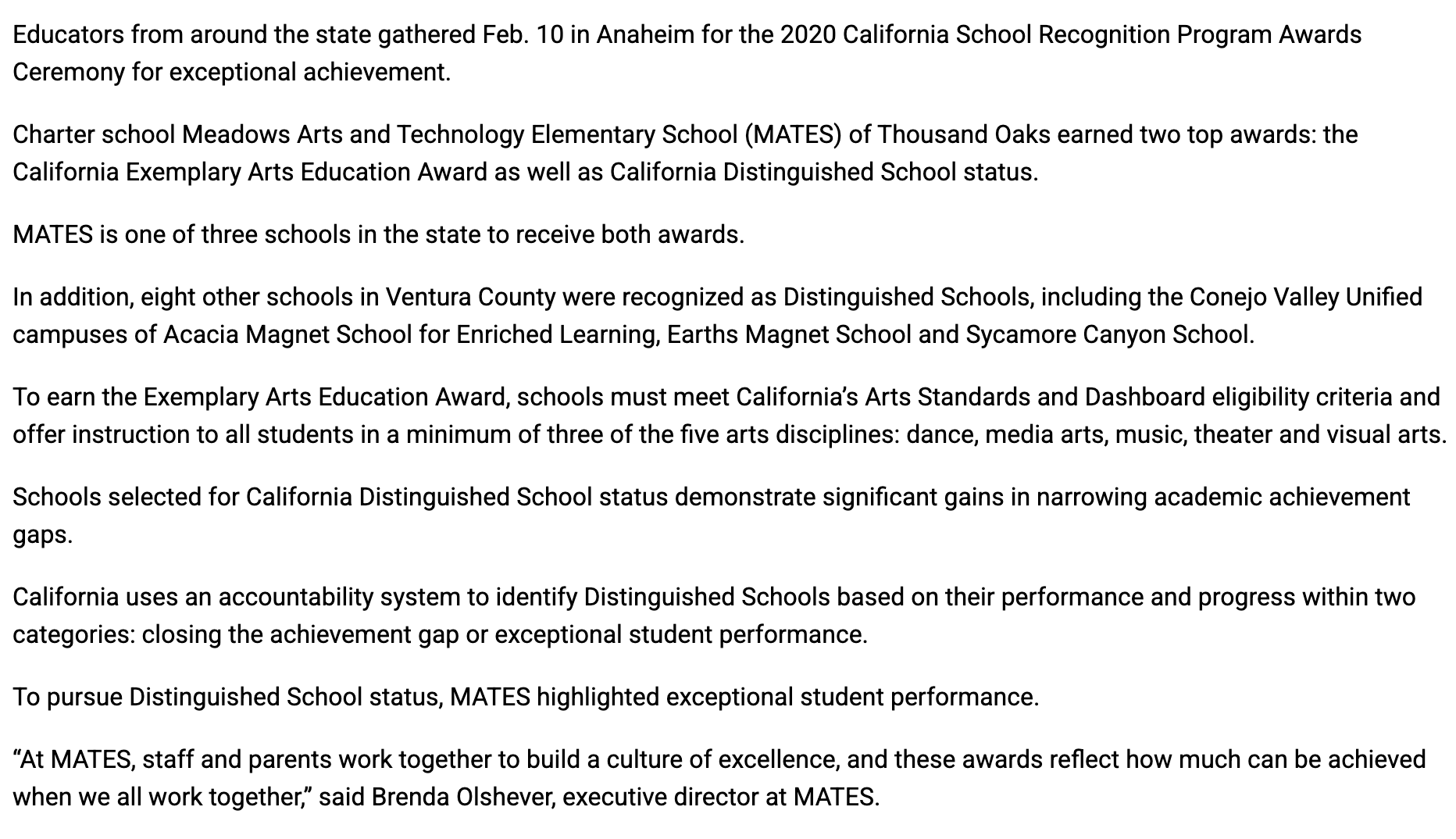 Category: Latest News, Sticky Tags: CA Distinguished Schools, CA Exemplary Arts Education Schools, California Department of Education, National Blue Ribbon Schools, TO Acorn, US Department of Education, Ventura County Office of Educaiton