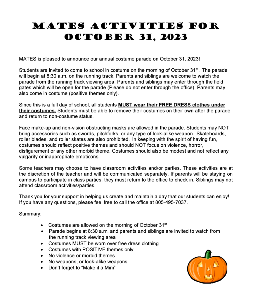 For classes having parties after the parade, parents who are participating must return to the office to check in