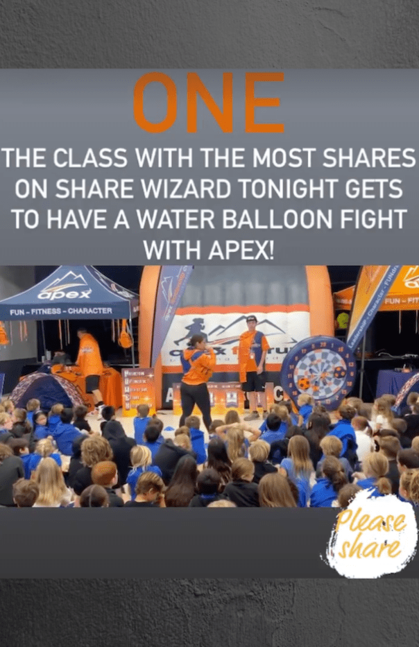 The class with the MOST SHARES on the Share Wizard tonight will get to pick FLEX BEC’S & APPLE JAX’S HALLOWEEN COSTUME!