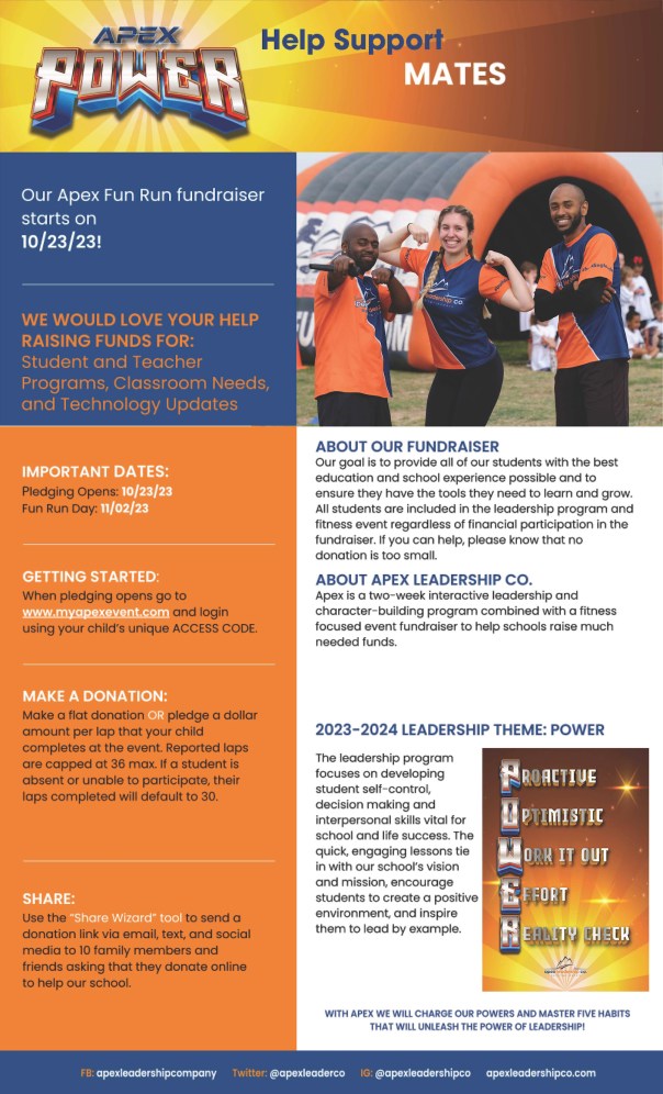 APEX is here to HELP MATES raise money for student and teacher programs, classroom needs, and technology updates!