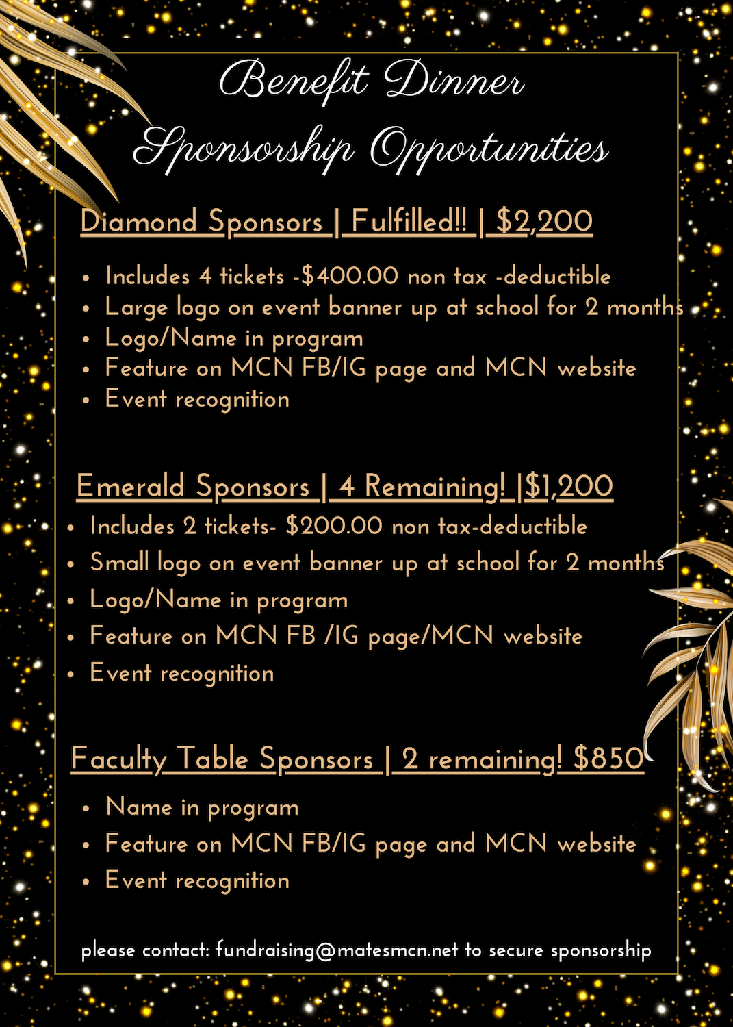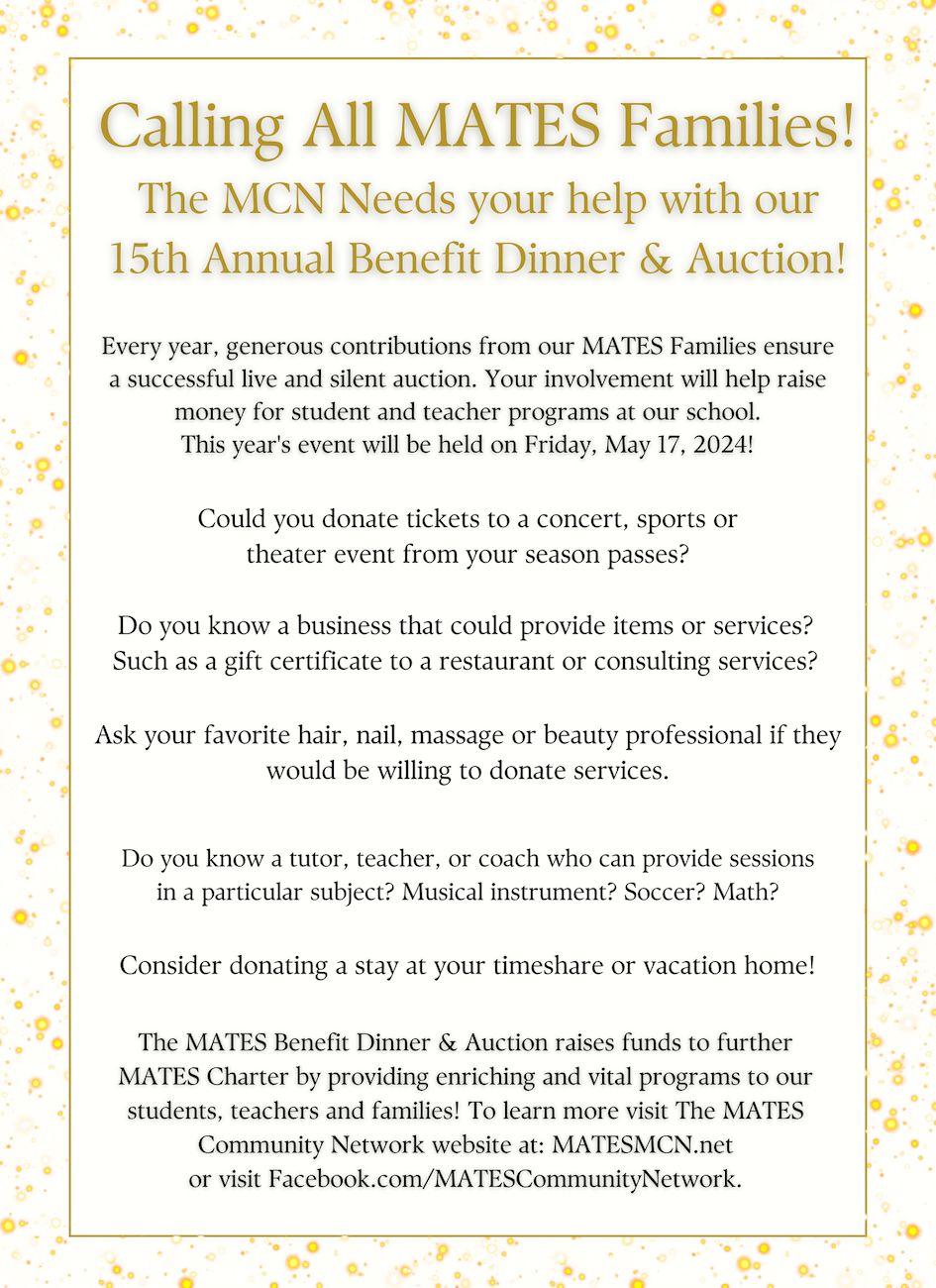 If you want to be involved in this special event regarding, fundraising, donations, and/or sponsorships, contact Fundraising Co-Chairs, Arezou Zaidi & Nancy Melgar: Fundraising@matesmcn.net