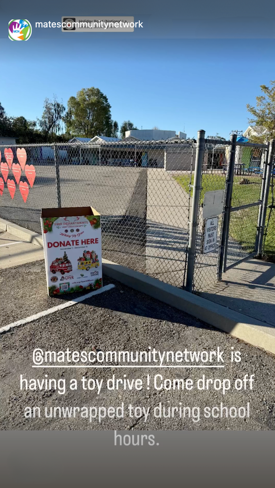 You may drop off a new, unwrapped toy anytime at MATES during school hours.