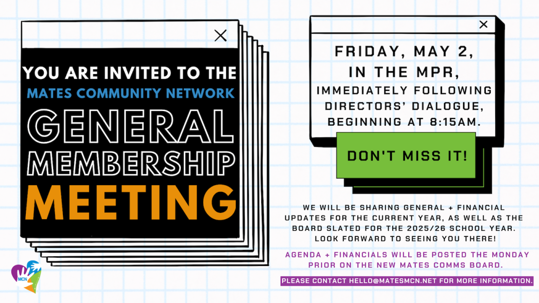 You are invited to join the 3rd MCN General Membership Meeting on May 2, in the MPR, immediately following the Director’s Dialogue.