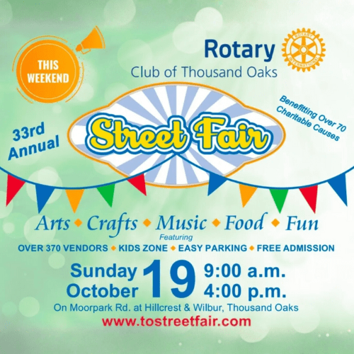 On Sunday, October 19th, 2025 the Rotary Club of Thousand Oaks will host the 33rd Annual TO Rotary Street Fair – the highly anticipated and largest event of its kind! For over a quarter century, this event has been a wonderful avenue to raise money while giving our citizens a chance to embrace tradition, philanthropy, and a sense of community. Through the years, 100% of the net proceeds raised at TO Street Fair have benefited thousand of lives in our communities, many of which have had to endure a heart breaking, life changing event. Thank you to all our sponsors, vendors, and patrons for helping make this community event possible!