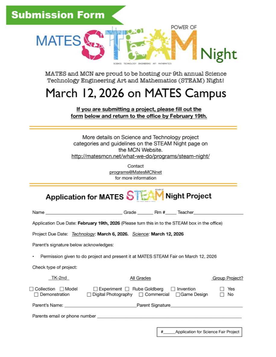 MATES & MCN are Proud to be Hosting Our 9th Annual Science Technology Engineering Art & Mathematics (STEAM) Night!