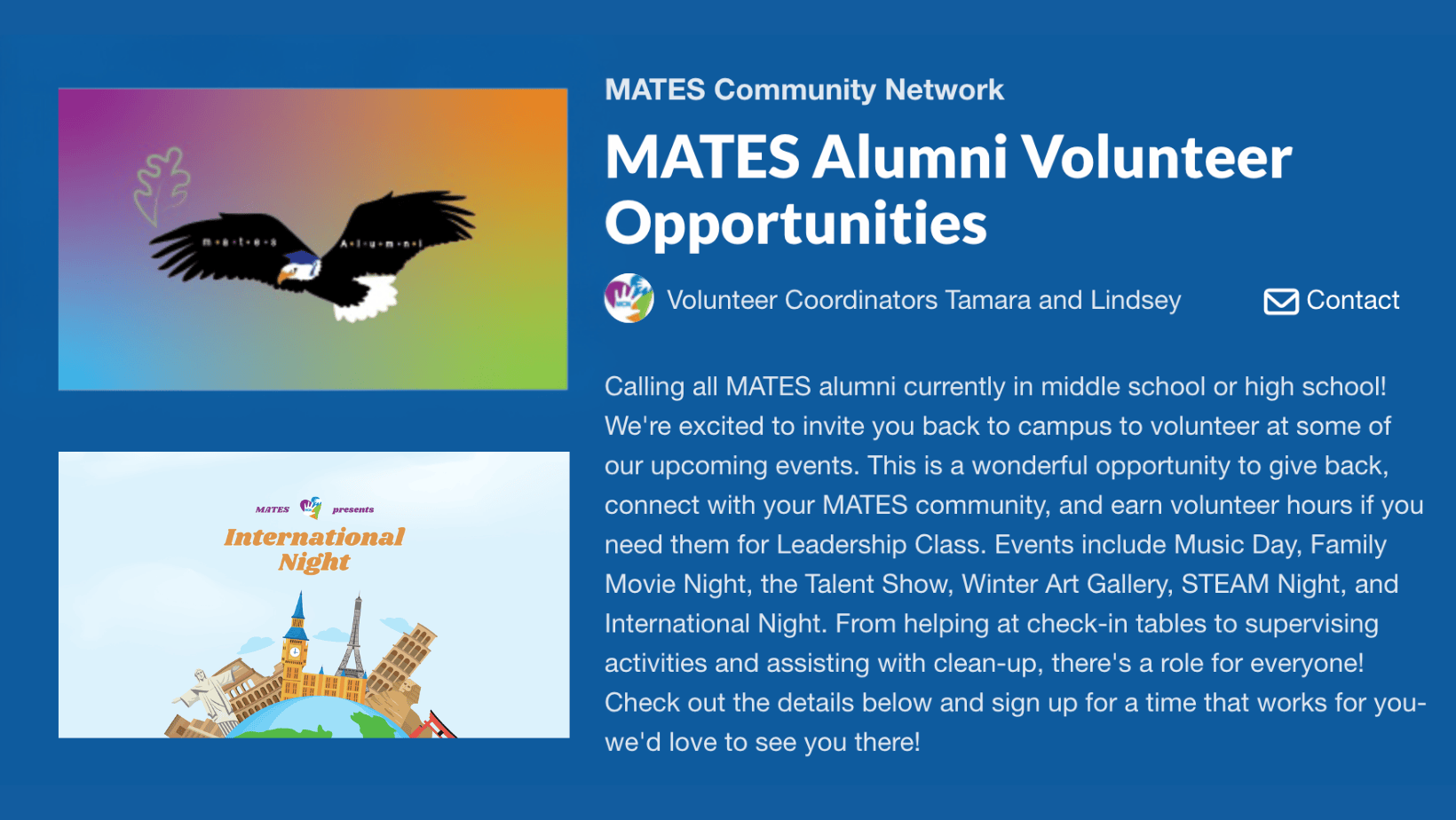 Feature your business while supporting this global-inspired school event. Gain community visibility with recognition online, during the event, and on campus — this way, the MATES Community can support you! WIN WIN!!