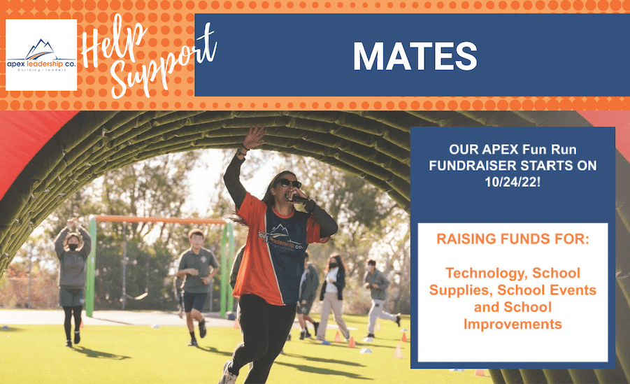 November 3 (Thu); Fun Run Kick-off starts October 24 (Mon) 2022 – 2023 Leadership Character Theme: APEX X-FACTOR Questions? Contact: fundraising@matesmcn.net for more information. back to top
