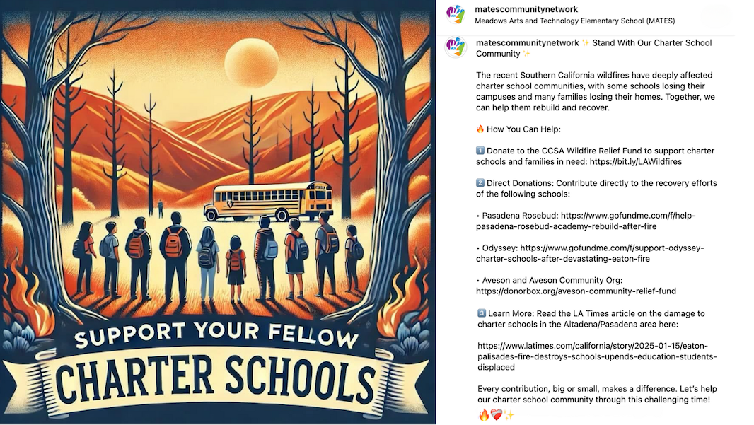 The recent Southern California wildfires have deeply affected charter school communities, with some schools losing their campuses and many families losing their homes. Together, we can help them rebuild and recover. π₯ How You Can Help: 1οΈβ£ Donate to the…
