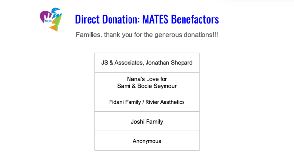 Thank You, MATES Families, for Participating in This Year’s MCN Direct Donation!