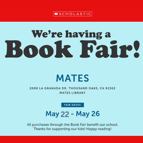 Paws for Reading at the MATES Book Fair * ONLINE SHOPPING BEGINS MAY 19 (FRI) Monday – Thursday | BEFORE & AFTER SCHOOL and DURING RECESS & LUNCH Thursday | DURING OPEN HOUSE EVENING EVENT (staff permitting) Friday | BEFORE…