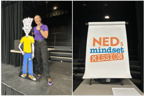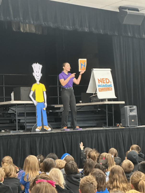 NED took the students on a captivating 45-minute journey filled with humor, yo yo & magic tricks, puppetry, and story telling. He was on a mission to find his mindset.