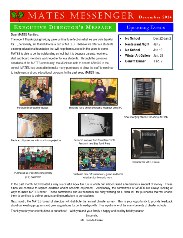 Find the right fit for you, and make a difference at MATES! We appreciate your help in funding MCN’s commitment to excellence in providing for our school!