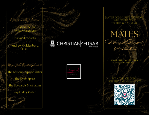We are excited to invite you to this year’s MATES Benefit Dinner & Auction — an unforgettable evening of community, celebration, and support for our students.