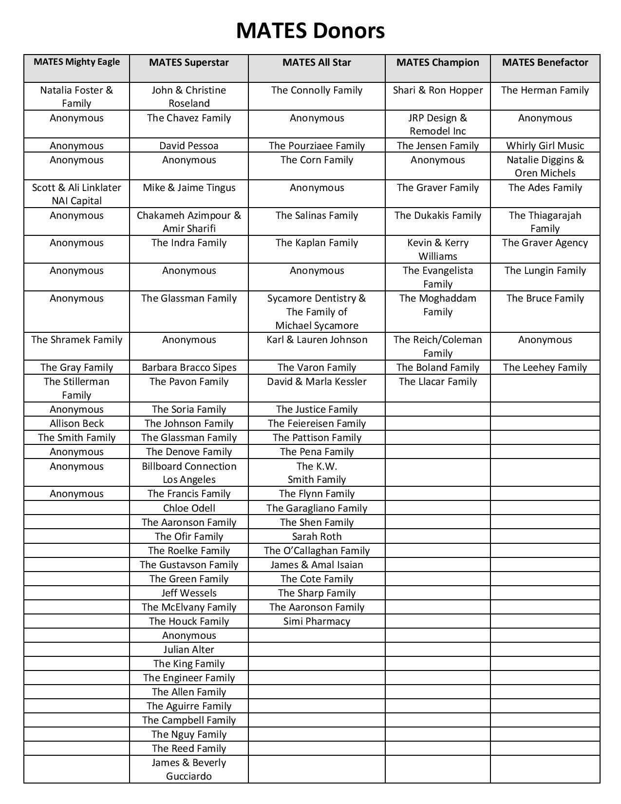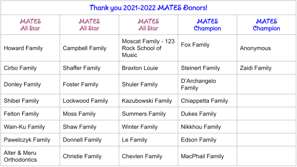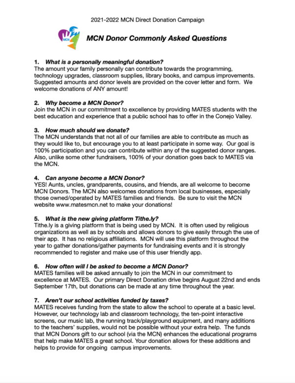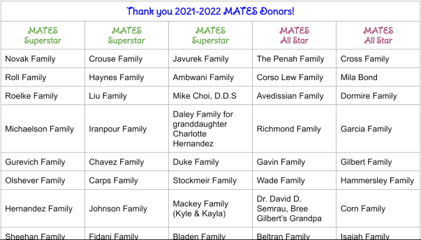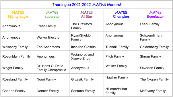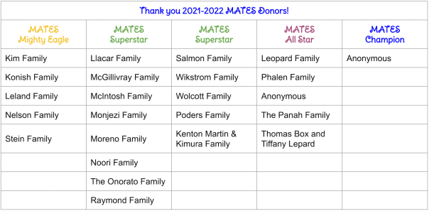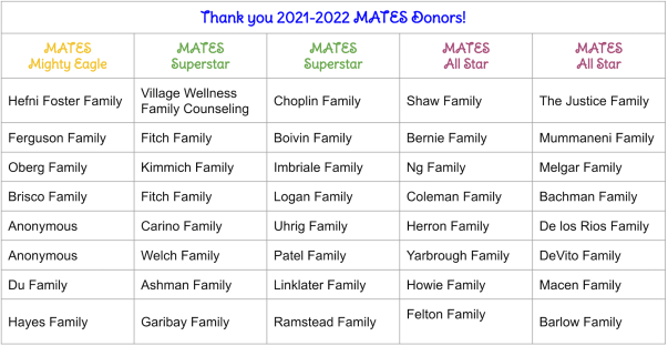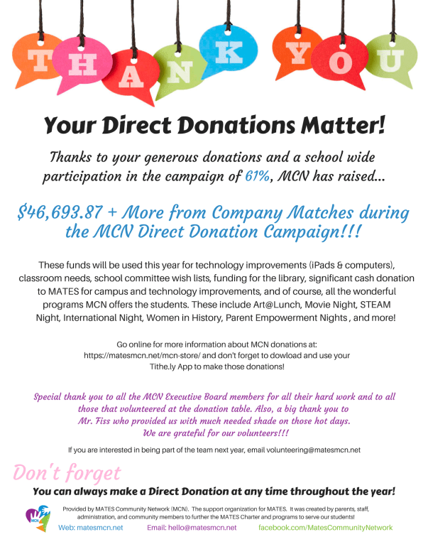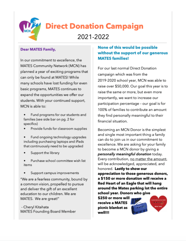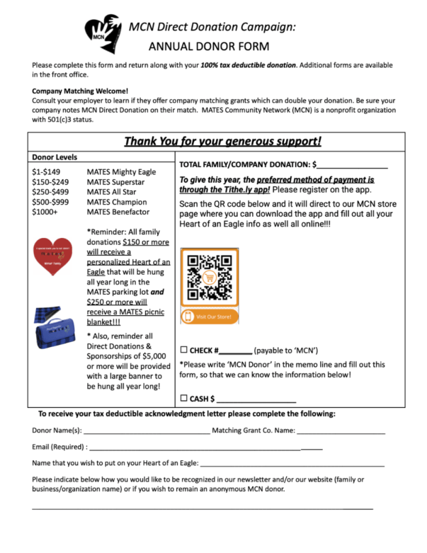 Thank You, MATES Families, for Participating in This Year’s MCN Direct Donation!