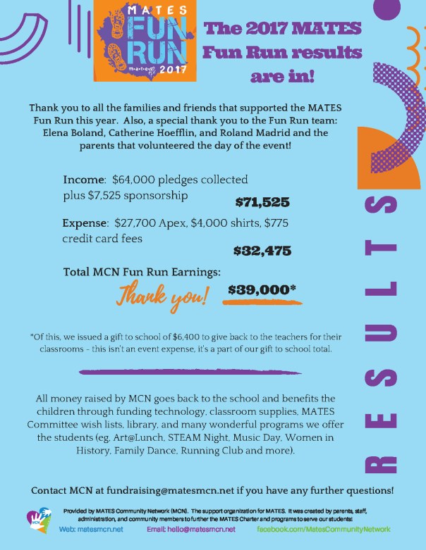Thanks Again for Supporting MATES Raise Money for Technology, School Supplies, School Events, and School Improvements!