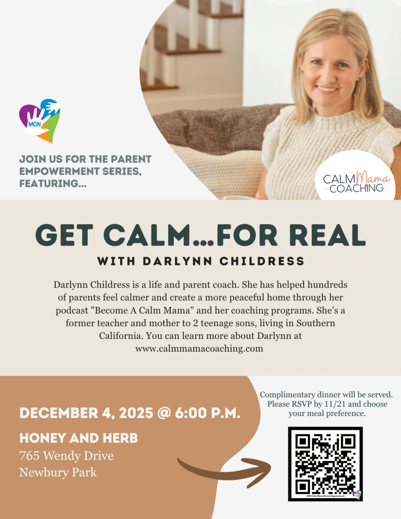 MCN is hosting a Complimentary Dinner from Mendocino Farms for this Calm Mama Parent Empowerment Event. We will be ordering Full Boxed-Sandwich Meals (comes with potato chips and a cookie). Water, Soft Drinks, and Iced Teas will be provided. Please pre-order your meal below: