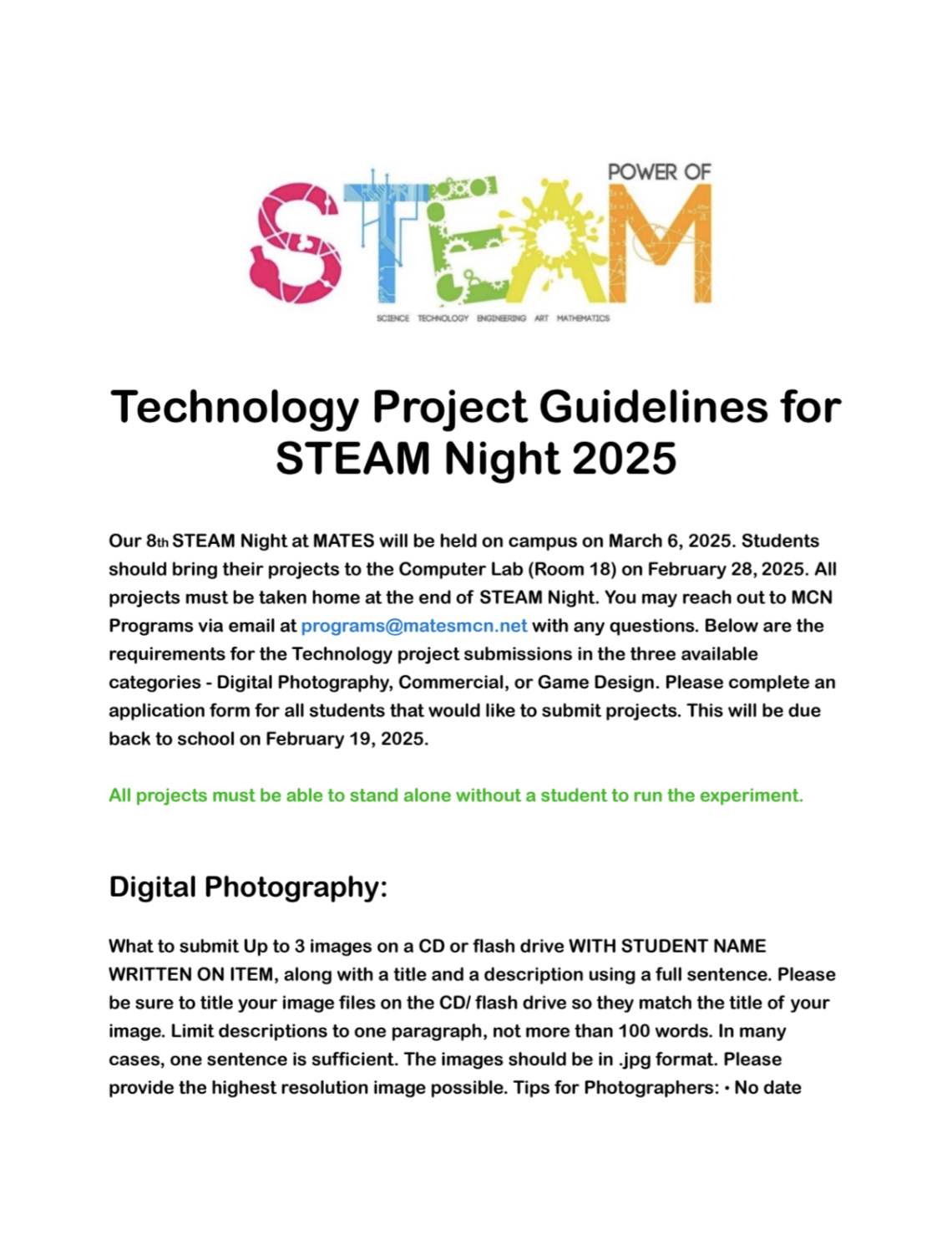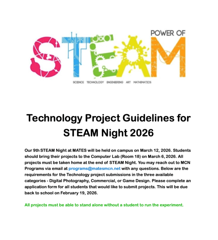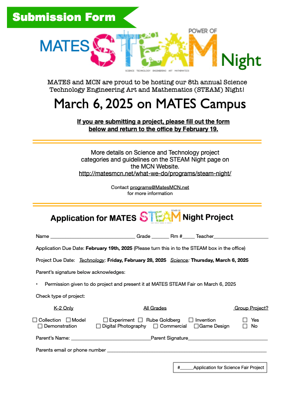 MATES & MCN are Proud to be Hosting Our 7th Annual Science Technology Engineering Art & Mathematics (STEAM) Night!