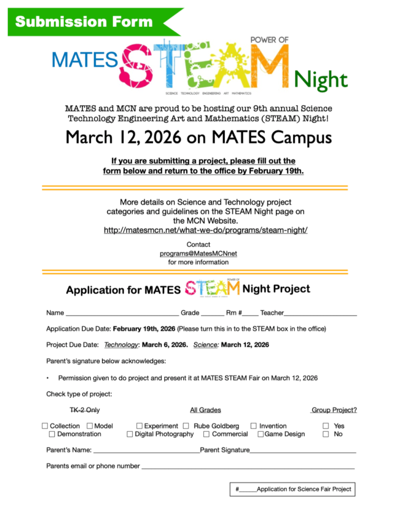 MATES & MCN are Proud to be Hosting Our 9th Annual Science Technology Engineering Art & Mathematics (STEAM) Night!