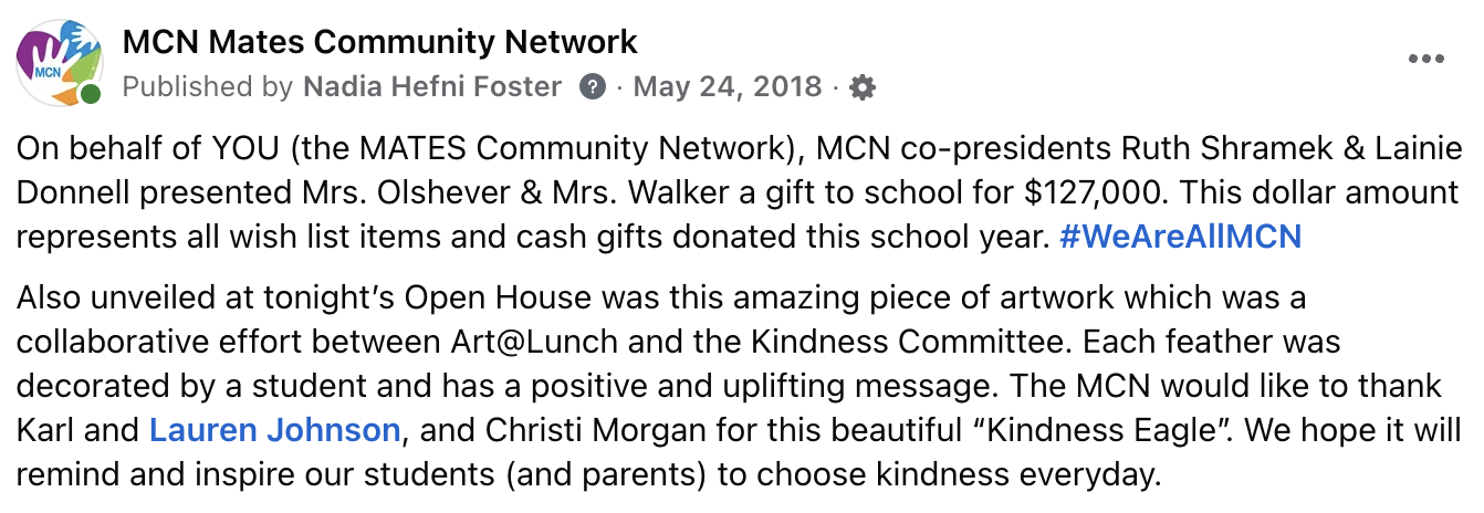 Thank you for helping our school soar, MATES Community Network! 🦅💙