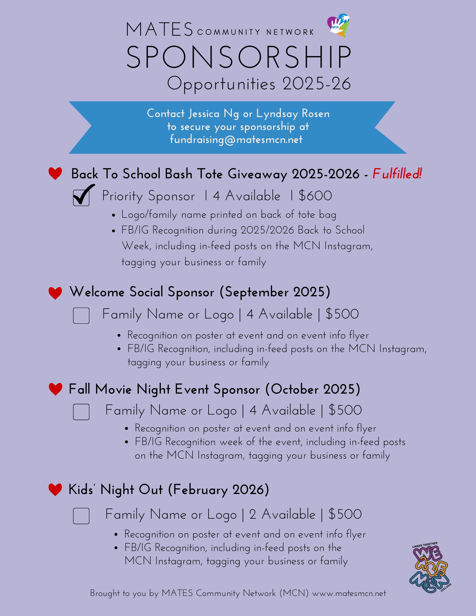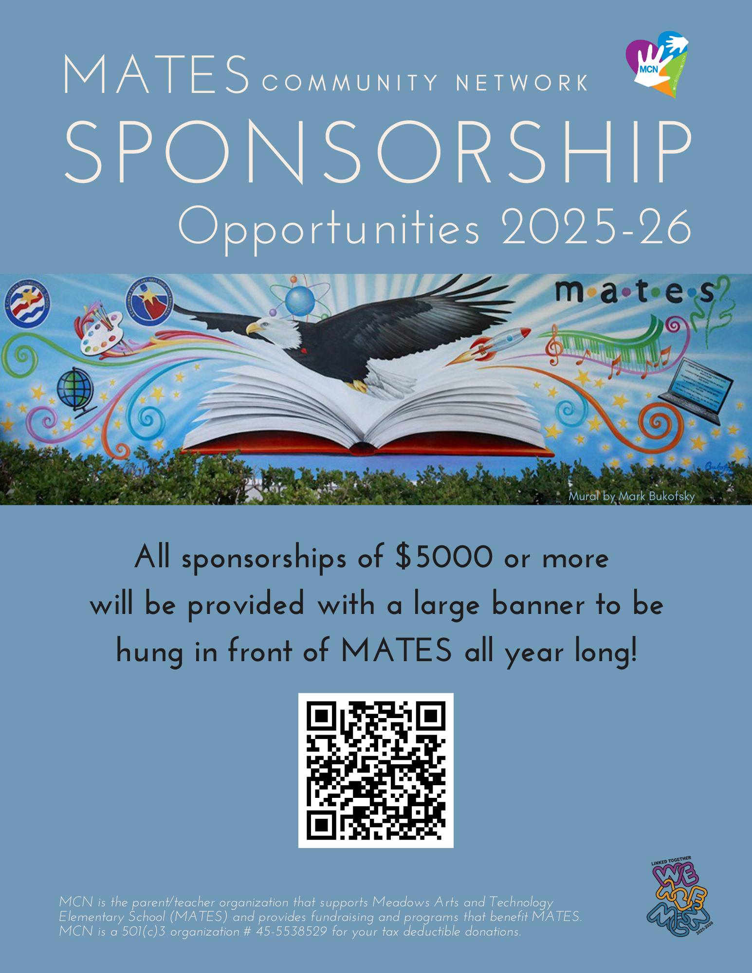 ✓ ❤️ All sponsorships of $5000 or more get a large banner to be hung in front of MATES all year long!