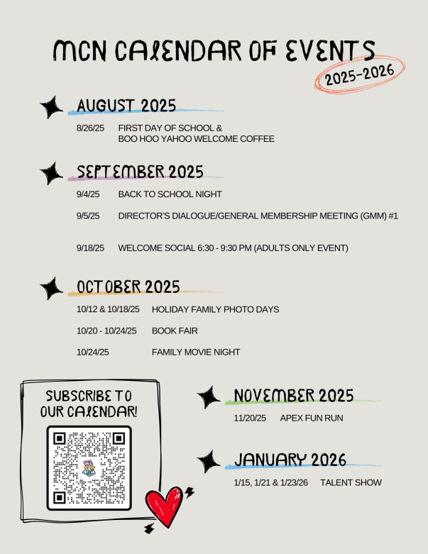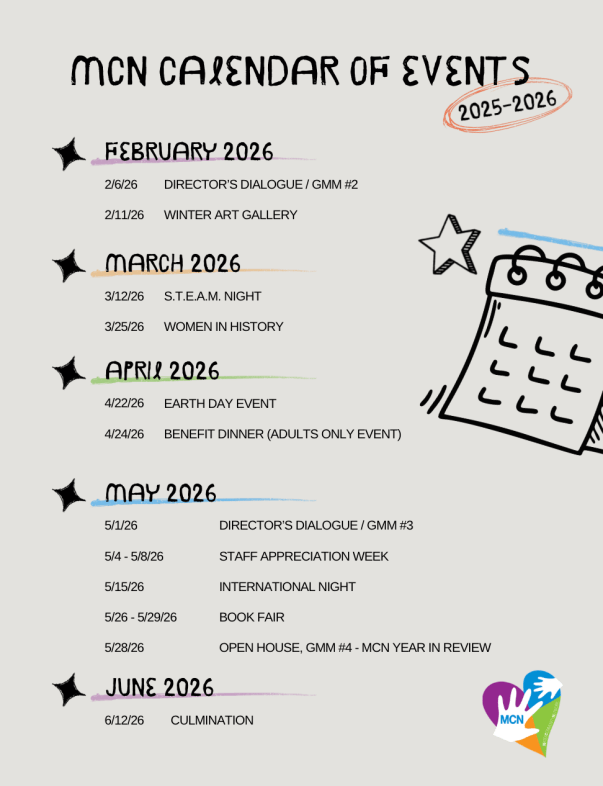 11 (Wed) | End of 2nd Trimester* / MCN Executive Board Meeting (6:30 pm)